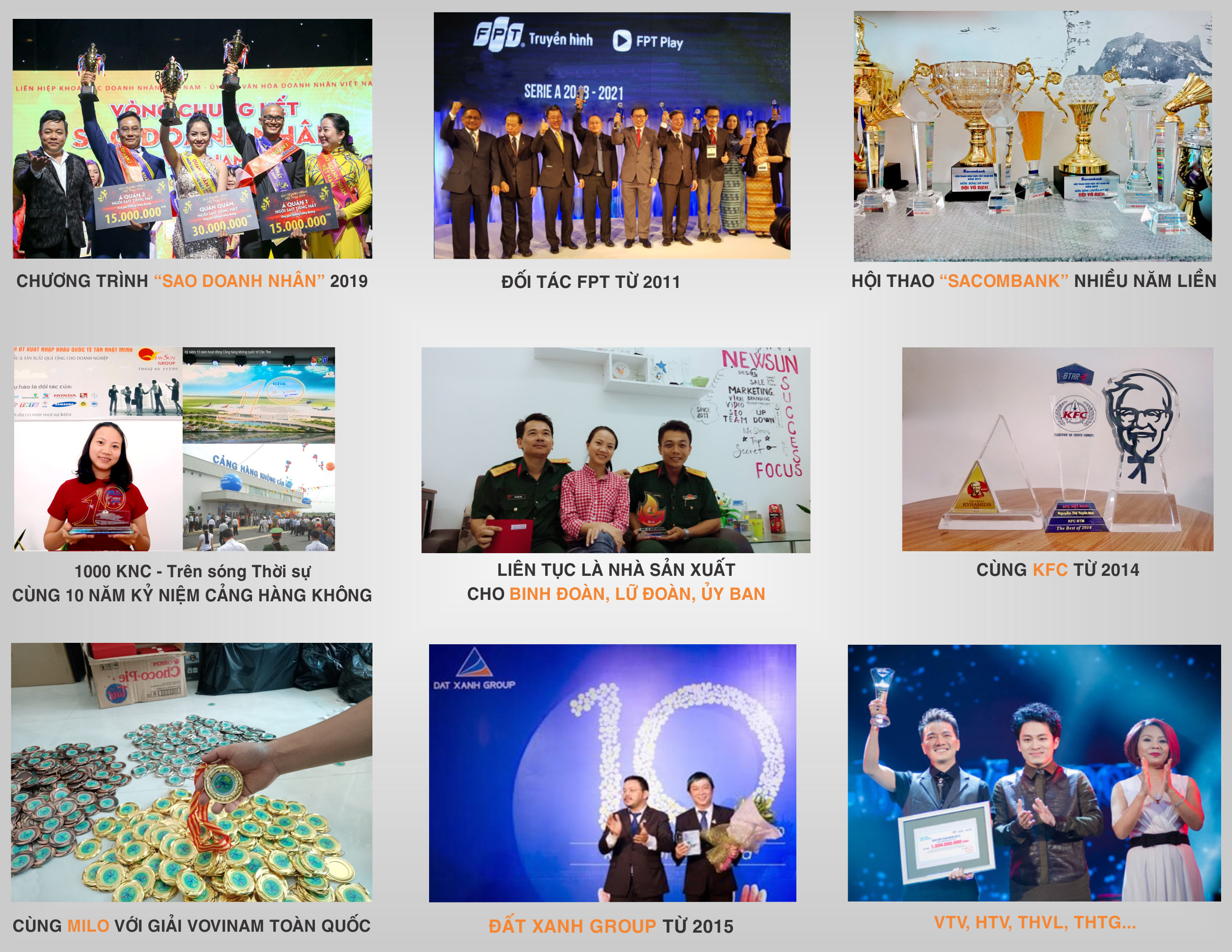 * Tân Nhật Minh - Newsun Group hơn "15 năm" sản xuất và nhập khẩu: kỷ niệm chương, cúp vinh danh, bảng vinh danh, cúp thể thao, quà tặng doanh nghiệp...