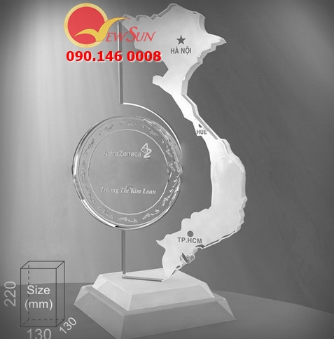 Và tôi muốn giới thiệu với các bạn dòng cúp cắt theo yêu cầu, có thể cắt theo hình nốt nhạc, micro, bản đồ chữ S Việt Nam thân yêu nè,… Các loại cúp pha lê này giống như là linh hồn của những thành tựu mà người được vinh danh nhận.