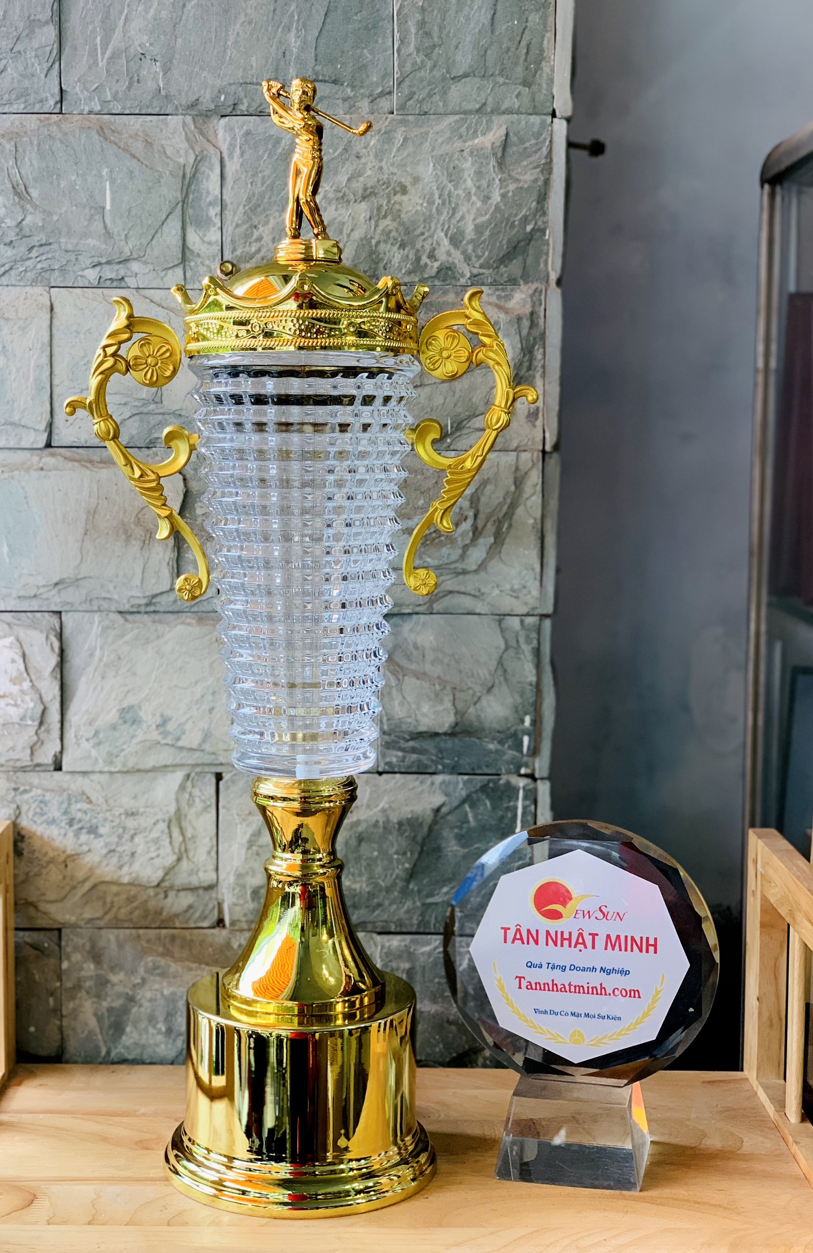 Cúp Golf pha lê mạ vàng đẹp