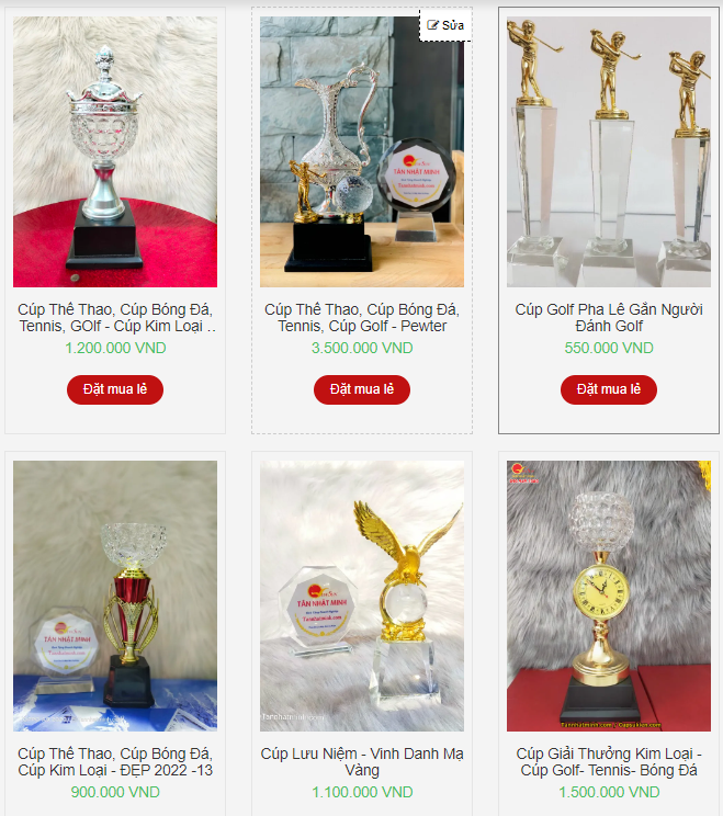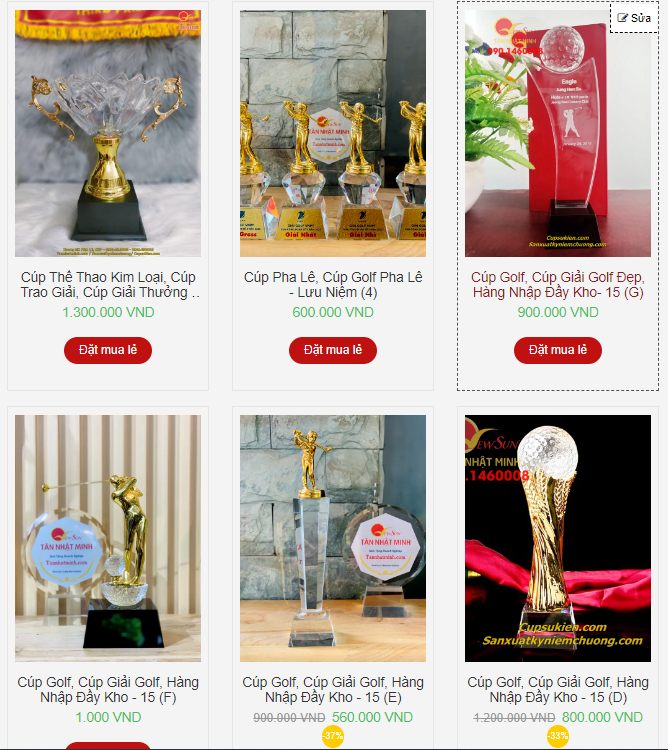 | ✅ Mẫu cúp giải golf - cao cấp | 3.000.000 - 20.000.000 |