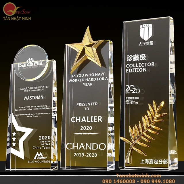 Với đội ngũ nhân viên tận tâm và quy trình sản xuất hiệu quả, chúng tôi có thể tối ưu hóa quy trình và giảm thiểu các chi phí để mang lại cho khách hàng giá trị tốt nhất. Giá bán của cúp pha lê tại Tân Nhật Minh dao động từ 500.000 đến 2.500.000 đồng, phù hợp với mọi ngân sách và nhu cầu của khách hàng.