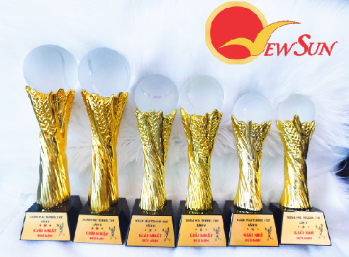 Đầu tiên dòng cúp mà tôi giới thiệu cho các bạn sau đây là dòng cúp có chất liệu làm bằng Poly. Đây là dòng cúp bán chạy nhất bên Công ty của chúng tôi vì chiếc cúp được làm bằng chất liệu Poly nên chắn chắn, phần thân chiếc cúp được chế tác chạm nổi với những hoa văn cực kì tinh xảo và bên ngoài được mạ một lớp màu vàng óng làm cho thân chiếc cúp trở nên cực kì bắt mắt. Phần đế được làm từ chất liệu pha lê đen nguyên khối khi kết hợp với phần thân màu vàng sẽ làm cho chiếc cúp trở nên rất nổi bật và làm toát lên giá trị của chiếc cúp. Phần đầu của chiếc cúp là một khối cầu hình quả bóng tennis được chế tác tinh tế và cầu kì.