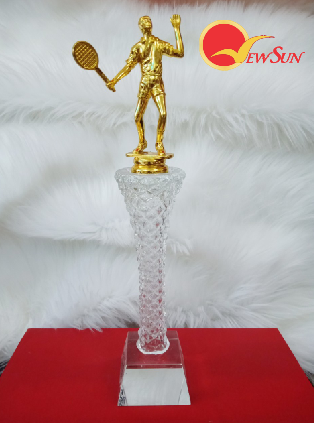 Dòng CÚP TENNIS ĐƯỢC ƯA CHUỘNG NHẤT thứ hai mà tôi muốn giới thiệu cho các bạn tiếp theo được làm bằng chất liệu từ pha lê. Và đây cũng là dòng cúp thuộc dòng sản phẩm bán chạy nhất của Công ty chúng tôi chỉ xếp sau dòng cúp Poly. Về chất liệu của dòng cúp này giống như tên gọi của nó vậy được làm bằng pha lê. Thân chiếc cúp được chạm nổi bằng những vân hoa văn tinh tế cùng với hình dáng thon gọn làm cho chiếc cúp trở nên thanh mảnh và tinh tế hơn. Phần đế của chiếc cúp cũng được làm từ 100% pha lê nguyên khối 4 mặt xung quanh có dạng hình thang, mặt đáy có dạng hình vuông chính vì thiết kế như vậy sẽ tạo một mặt đế vững chắc để giúp chiếc cúp đứng vững hơn. Phần đầu cúp sẽ có nhiều lựa chọn cho các bạn như sẽ lấy quả cầu hình quả bóng tennis hay hình người đánh tennis để làm đầu chiếc cúp hoặc có thể làm theo thiết kế của bạn,.......Nếu các bạn là một "tín đồ" của dòng cúp pha lê thì việc sở hữu một chiếc cúp pha lê như tôi đã giới thiệu ở trên chắc chắn sẽ không làm cho các bạn sẽ thất vọng.