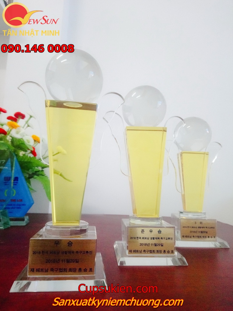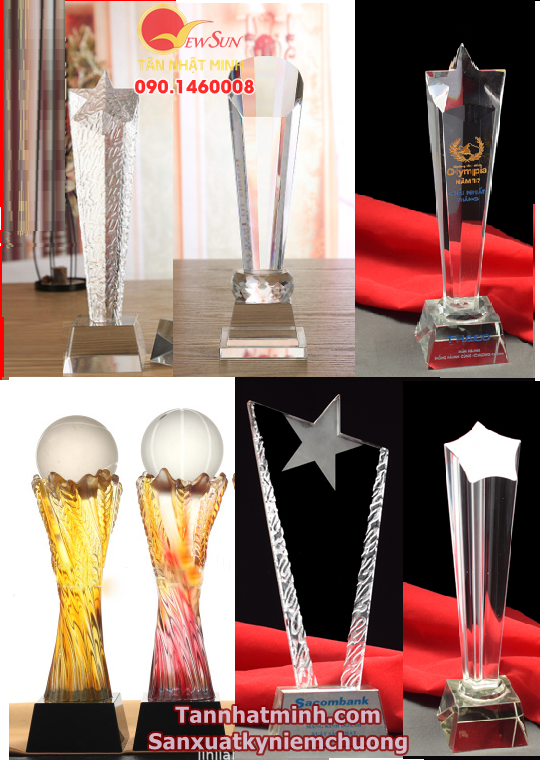 Thứ nhất, cúp pha lê nhập. Đặc trưng của cúp này là mẫu mã, màu sắc bắt mắt, chất liệu pha lê nhập cao cấp. Nhưng cũng không khó để nó lọt TOP 3 cúp cao cấp, vì hàng nhập lúc nào cũng hơn hàng nội địa trong nước mà.