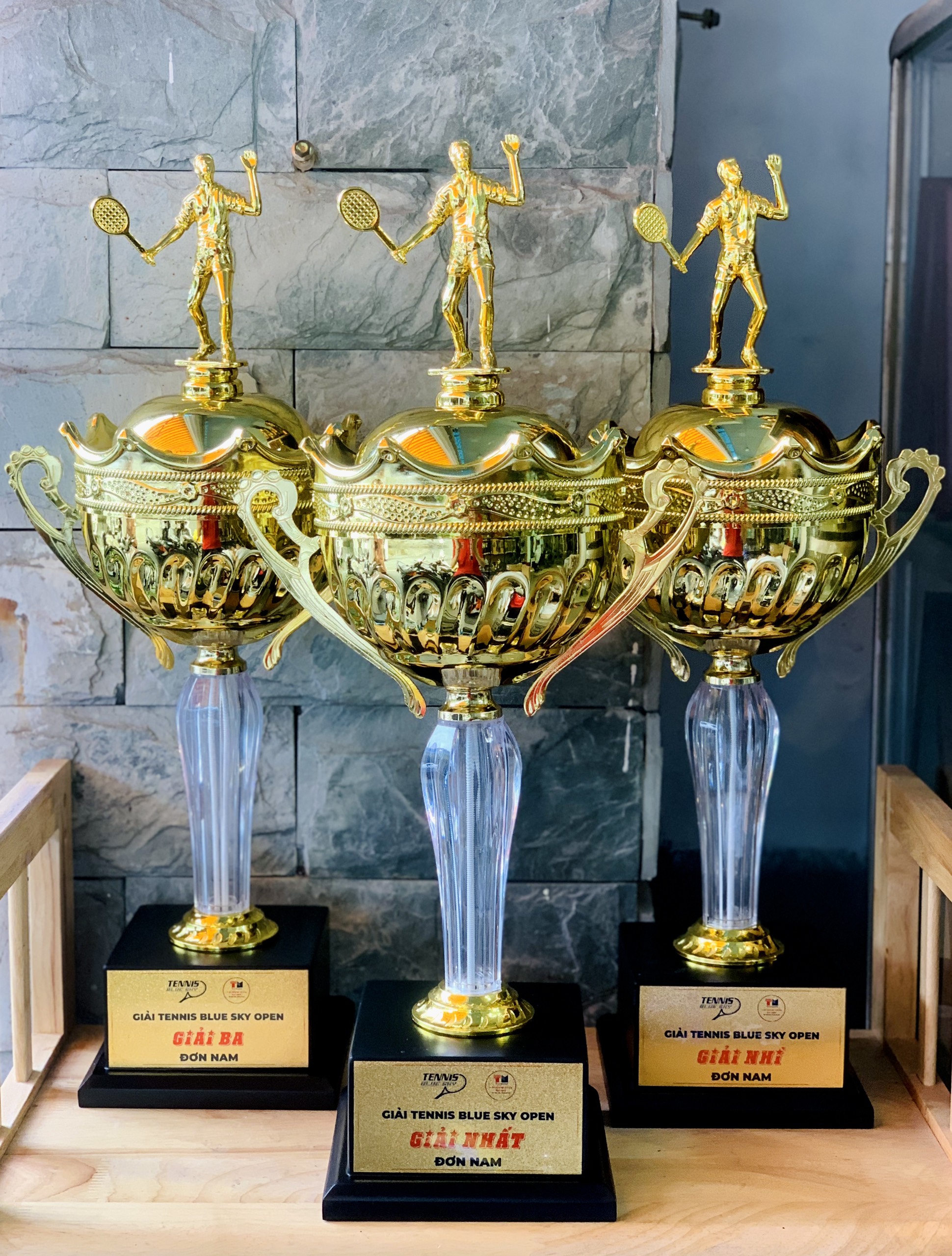 Cúp tennis: Tennis là môn thể thao yêu cầu sự cởi mở, nhanh nhẹn và công nghệ cao. Cúp tennis thường có hình dáng thon, tinh tế, với những chi tiết trang trí như vợt tennis, quả bóng tennis hoặc hình ảnh các vận cổ vũ đang thi đấu. Chất liệu làm cúp tennis thường là kim loại, pha lê hoặc phối hợp giữa các nguyên liệu, tạo nên sự bền bỉ và thích mắt.