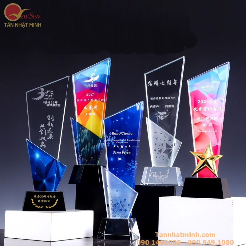 Là những sản phẩm Cúp lưu niệm pha lê được chế tác trong nước, có thể làm theo mọi hình dạng và kích thước. Linh động trong nội dung và hình thức. Có thể điêu khắc theo bất kỳ hình dạng logo hay hình ảnh nào chúng ta muốn.