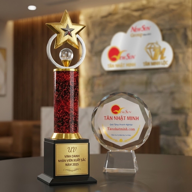 Tân Nhật Minh đã có hơn 15 năm kinh nghiệm trong ngành Sản xuất – làm - in Kỷ niệm chương, Bảng vinh danh, Cúp vinh danh, Cúp thể thao, Cúp lưu niệm, Cúp pha lê, Cúp thủy tinh, Huy chương, Cờ lưu niệm, Cúp golf, Cúp tennis, Cúp bóng đá... Giao hàng toàn quốc.