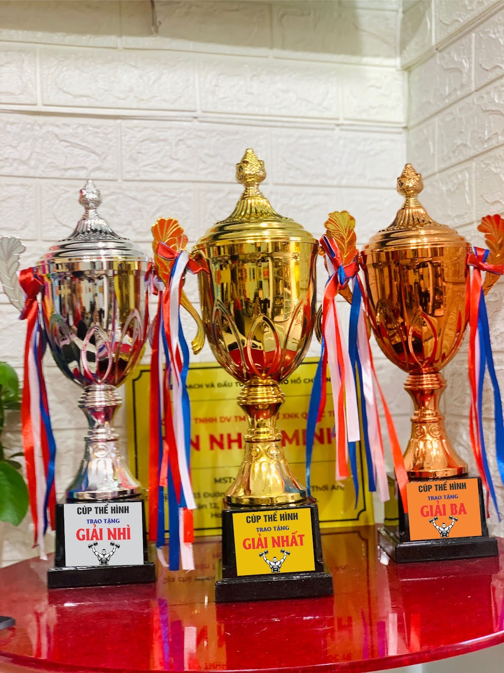 - Chúng tôi tự hào là 1 công ty chuyên làm ra các loại cúp thể hình chất lượng cao, đa dạng về kiểu dáng và mẫu mã. sản phẩm của chúng tôi được sản xuất từ những nguyên liệu chất lượng như kim loại, gỗ, và pha lê cao cấp, đem đến sự sang trọng và đẳng cấp cho những giải đấu thể hình.