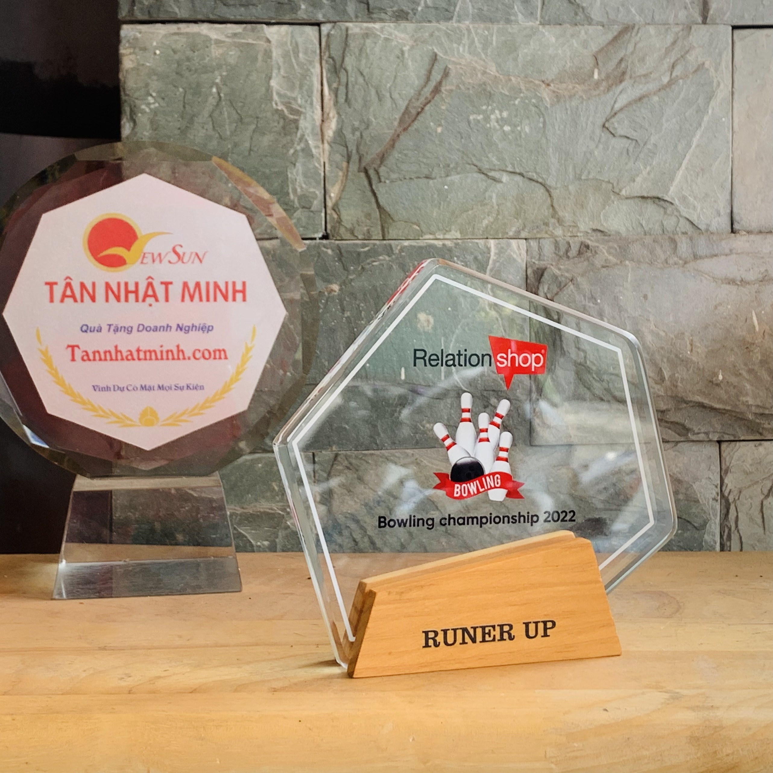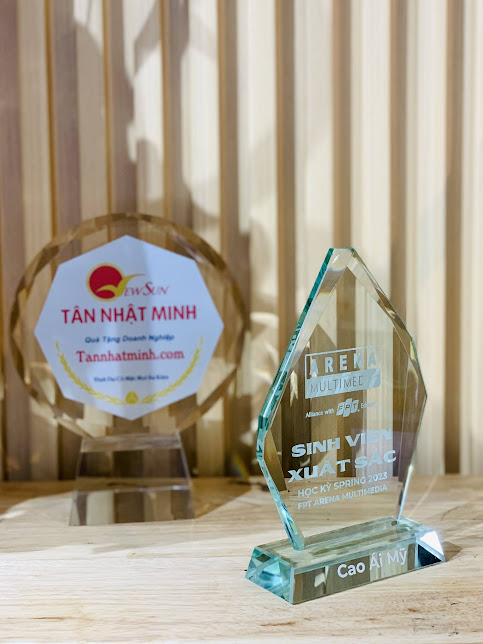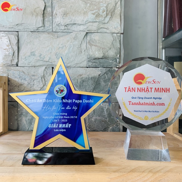Kỷ niệm chương mica: Giá trong khoảng 300.000 đến 700.000 VNĐ. Mica là chất liệu bền vững, độ trong suốt cao, đem đến vẻ đẹp đơn giản và sang trọng.