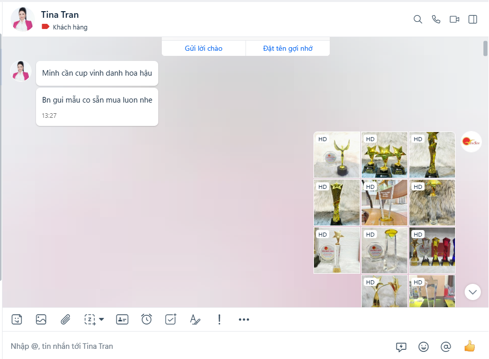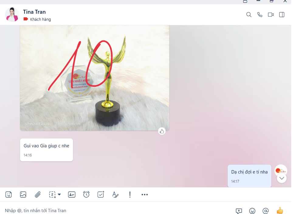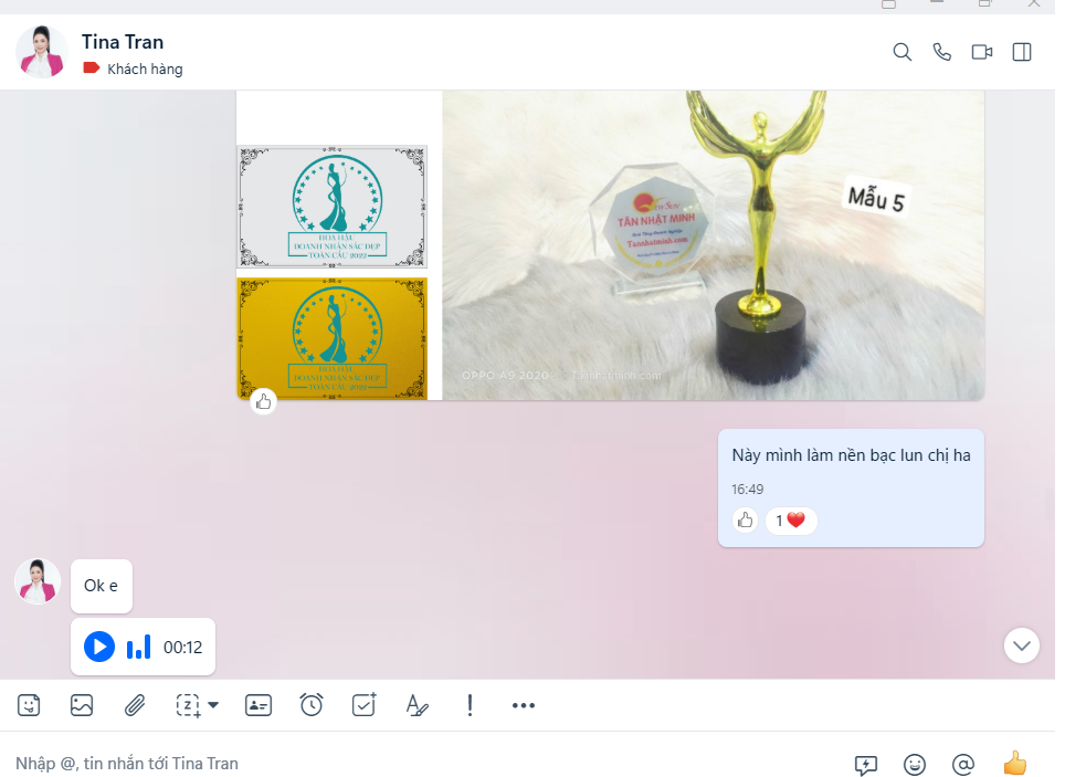 Vào giờ nghỉ trưa, chị khách liên hệ em ơi chị đang cần cup vinh danh cho hoa hậu, thế là lật đật dậy gửi mẫu Cúp vinh danh tư vấn, chăm sóc tận tình cho chị khách ?