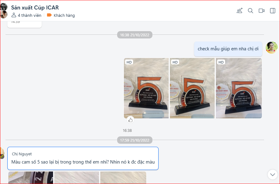 Chị khách liên hệ với công ty từ những ngày giữa tháng 9, khi chị chưa tìm được mẫu nào độc đáo và khác biệt. Với kinh nghiệm hơn 10 năm trong nghề, Tân Nhật Minh sẵn sàng tư vấn những mẫu kỷ niệm chương pha lê mang thương hiệu cũng như màu sắc riêng của mỗi khách.
