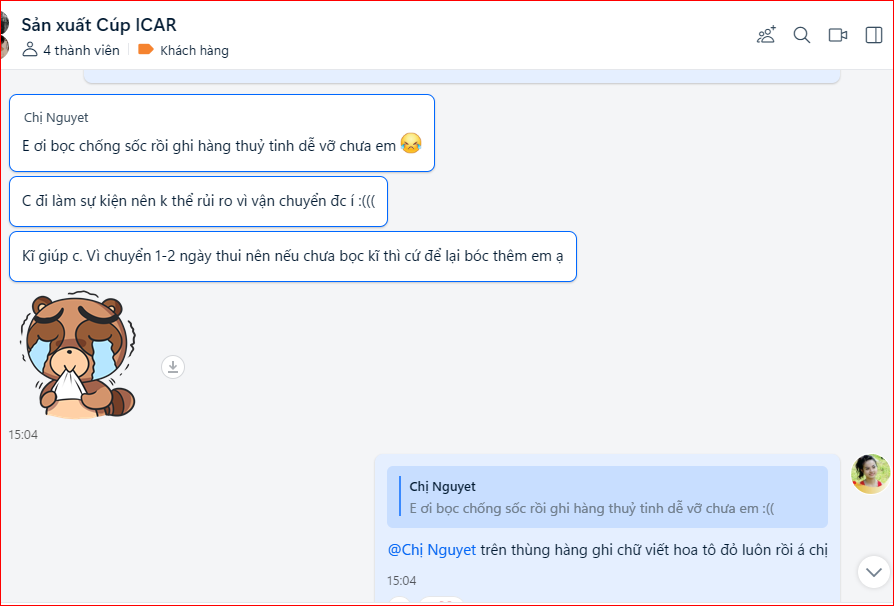 Sau khi khách duyệt mẫu, đã cọc và bên mình cho sản xuất, đóng hàng gởi đi Phú Quốc. Để đảm bảo an toàn, bên mình đóng gói cẩn thận từng cái, bọc, lót và dán giấy note ở ngoài thùng hàng.