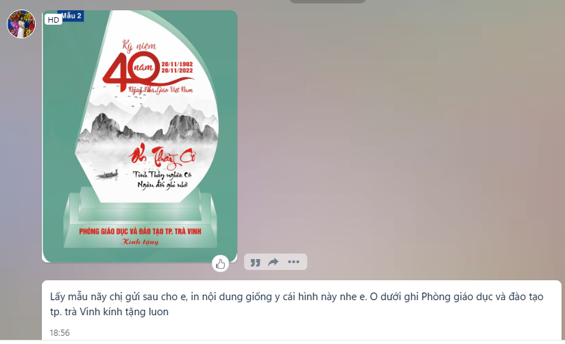 Chị khách cần đặt mẫu Kỷ niệm chương phale để trao tặng nhân dịp 40 năm ngày Nhà Giáo Việt Nam