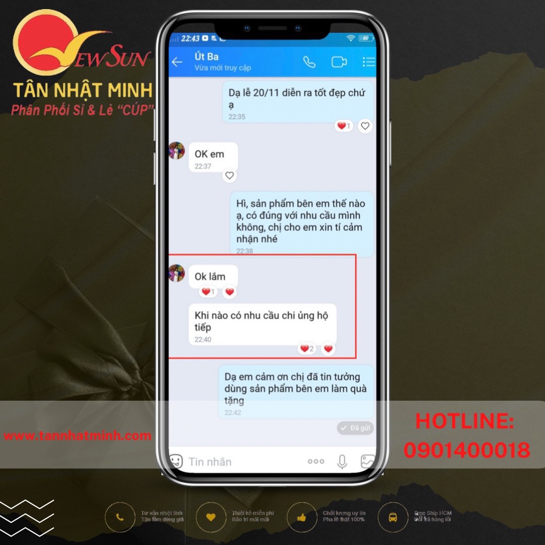 Cuối cùng đã cho ra được sản phẩm theo đúng nhu cầu của chị khách và nhận lại được những lời khen dành cho sản phẩm. Cảm ơn chị đã tin tưởng Công Ty Tân Nhật Minh và lựa chọn sản phẩm bên em làm quà tặng ? ? ?