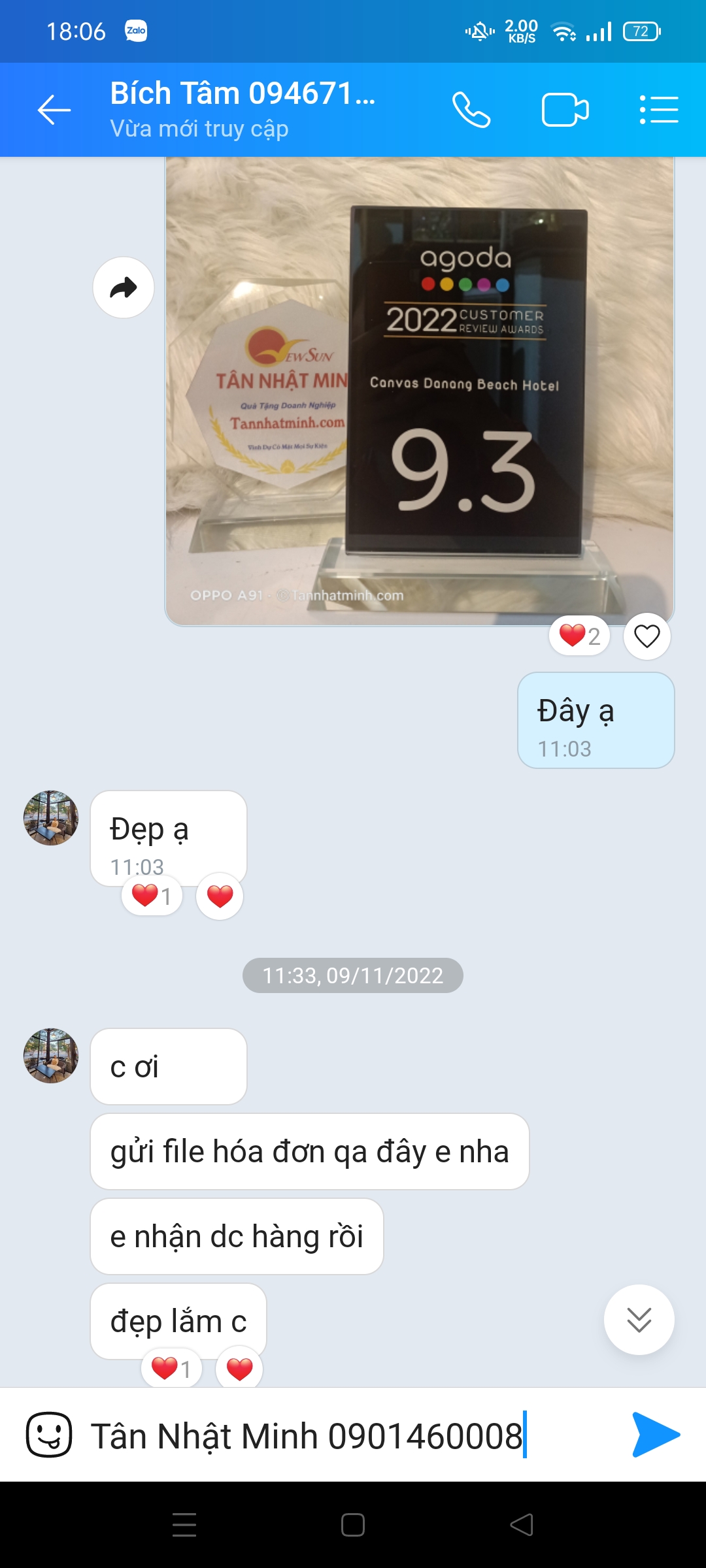 Kỷ niệm chương pha lê - Khách Hàng AGODA