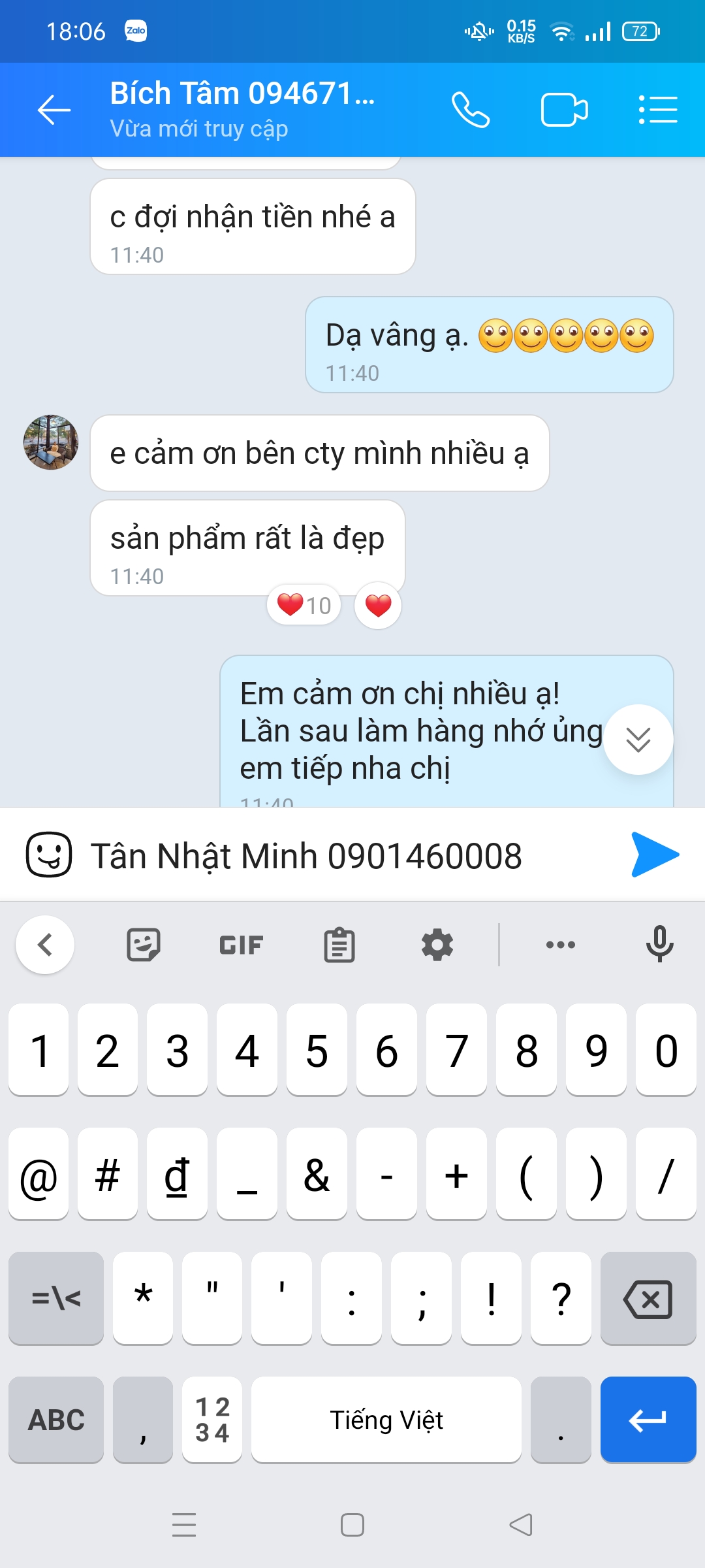 Rất cảm ơn khách đã tin tưởng và đặt hàng tại Công ty Tân Nhật Minh.