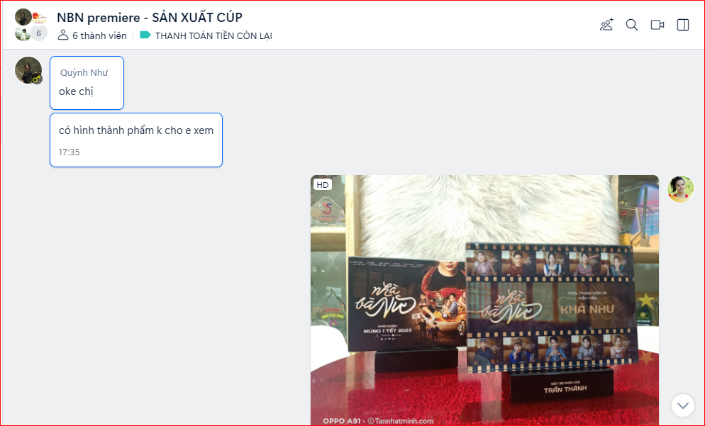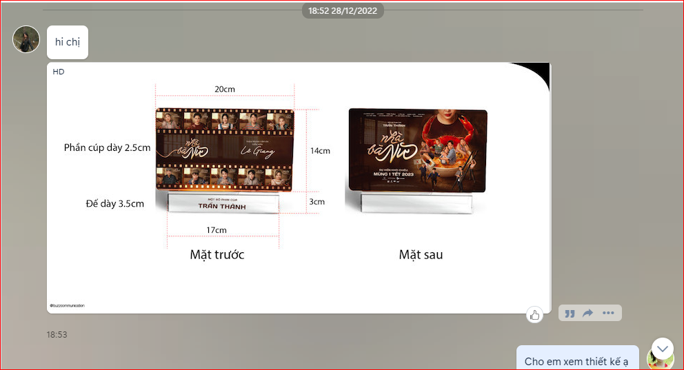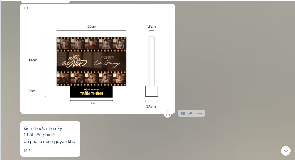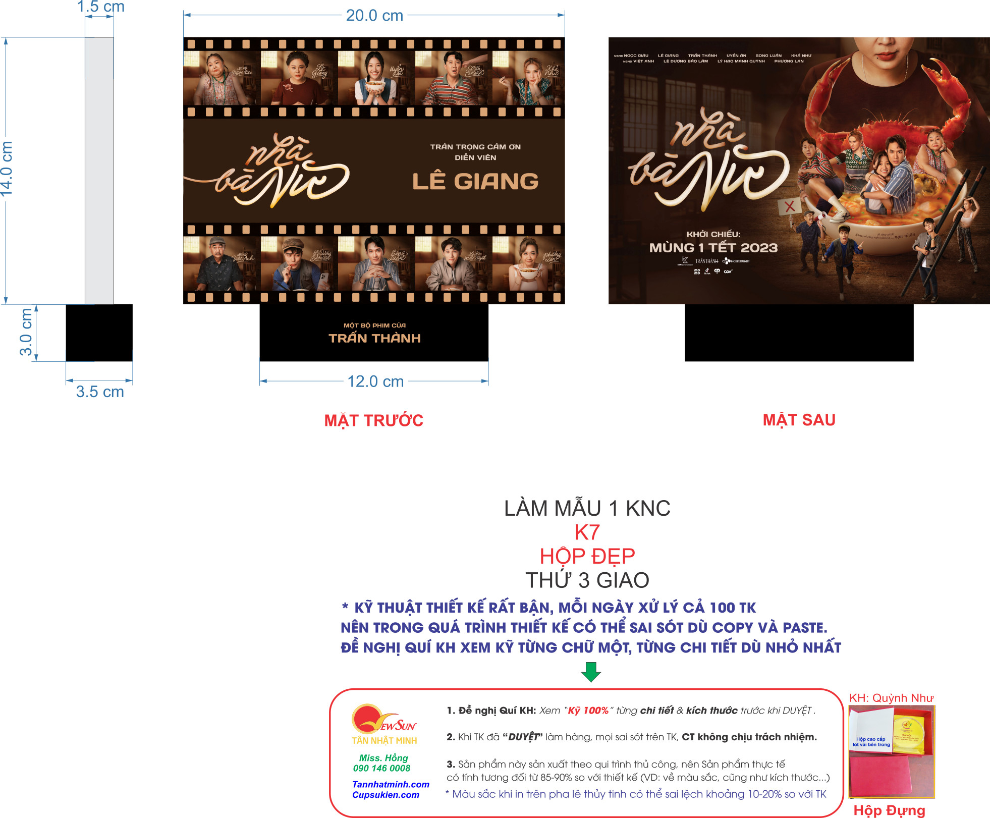 Trước lễ ra mắt phim tầm 10 ngày, Bên bộ phận PR của Đoàn Làm Phim liên lạc với Tân Nhật Minh. Sau khi hỏi qua rất nhiều đơn vị thương mại cùng ngành nghề, đã chọn đơn vị Sản xuất Tân Nhật Minh, làm kỷ niệm chương pha lê để trao tặng nghệ sỹ.