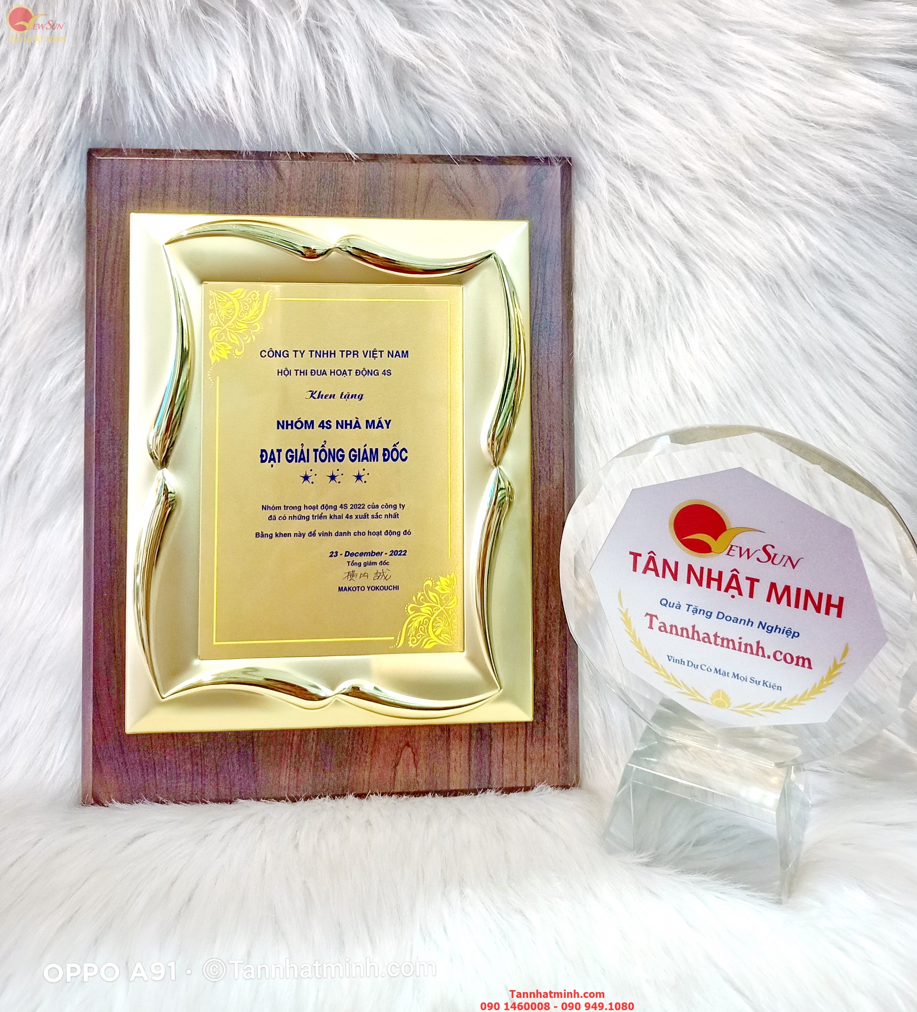 - Bảng vinh danh gỗ đồng - nhân viên xuất sắc: Kết hợp giữa vẻ đẹp của gỗ và sự sang trọng của đồng, thích hợp cho các sự kiện đặc biệt.