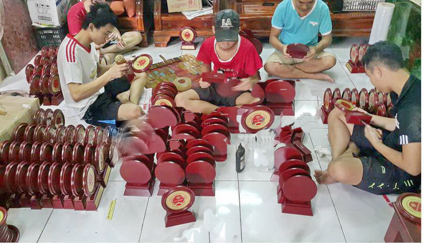 Đóng gói: sẽ có đội ngũ chuyên về đóng gói sản phẩm, các bảng vinh danh được chèn một lớp xốp để tránh va đập và đóng hộp giao đến cho khách hàng