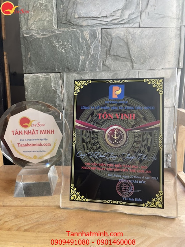 Giá " Bảng vinh danh " niêm yết cho SL nhiều >100 cái! Đặt lẻ Vui lòng liên hệ bên em nha ( Zalo 0901460008). Tân Nhật Minh hơn 15 năm sản xuất Kỷ niệm chương gỗ đồng - pha lê vinh danh