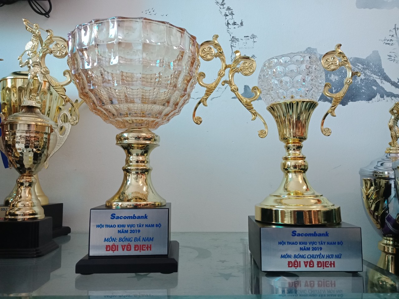 Đây là các sản phẩm Cúp, kỷ niệm chương Tân Nhật Minh đã làm với Sacombank
