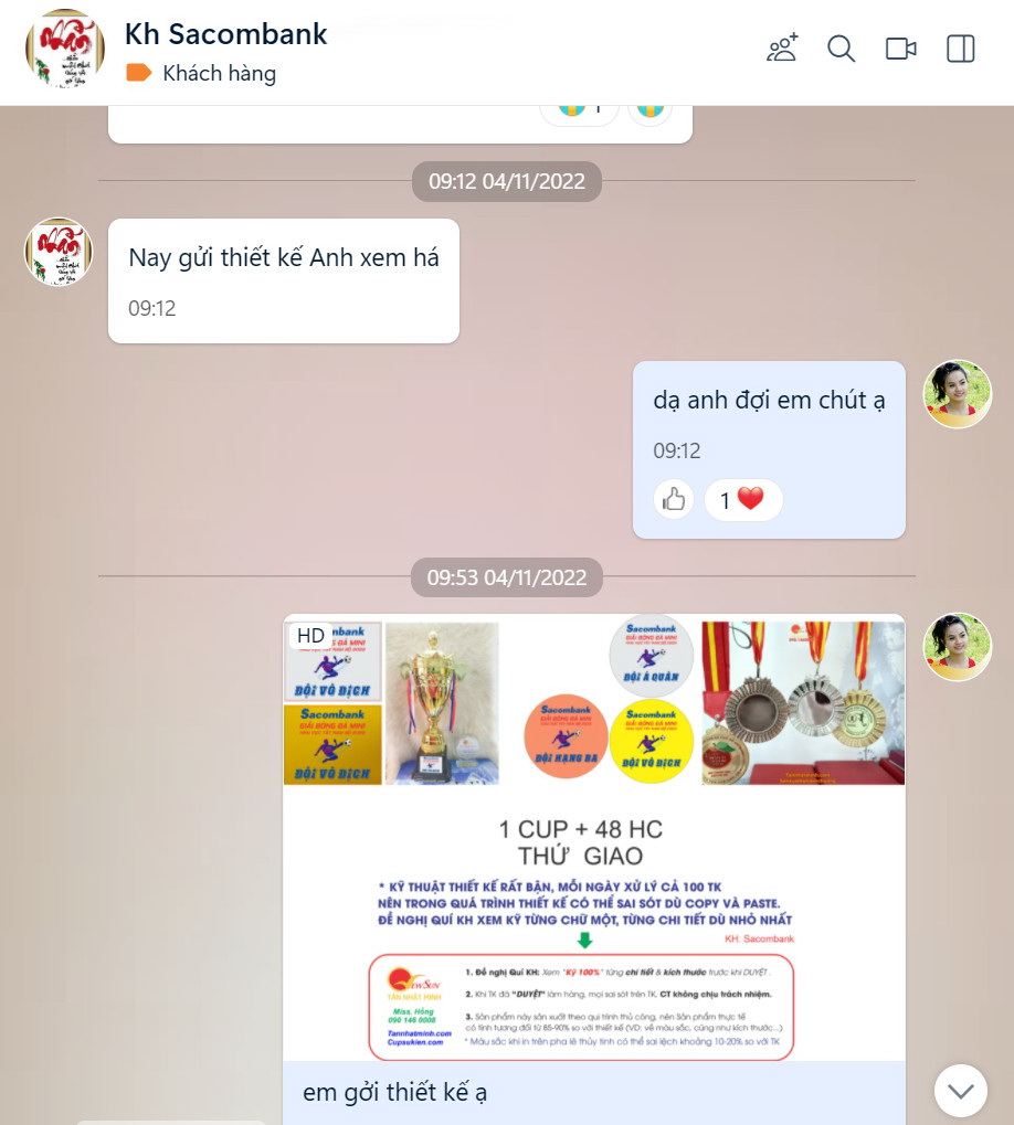 KH cần gấp: Chỉ tong vòng 30 phút chúng tôi đã gửi lại Thiết kế để kịp làm hàng ạ
