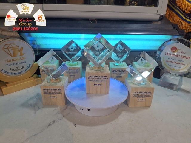 Cúp khắc pha lê 3D + In UV cao cấp